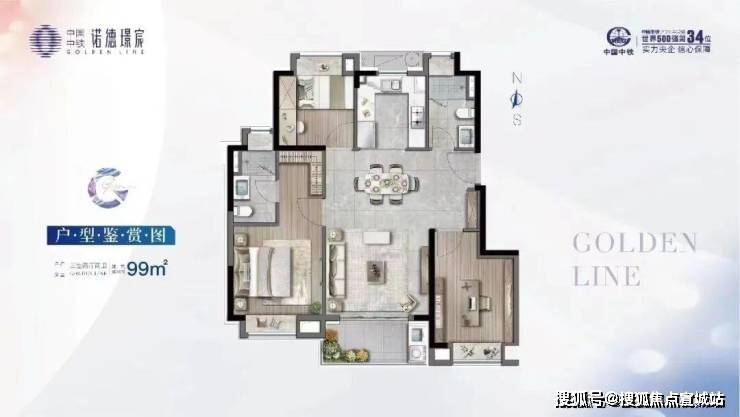 中铁诺德•璟宸有三种户型:约89平的三房两卫,约99平的三房两卫,和约129平的四房两卫。