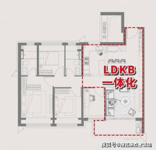对于99㎡的居住空间,不多占、不多用面积就是最大的利好。