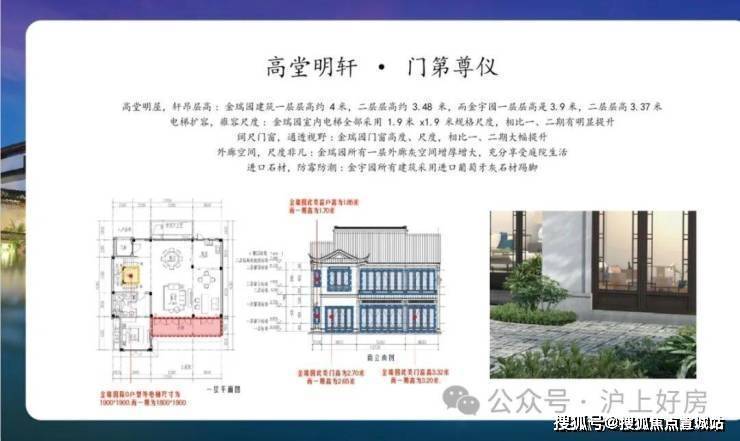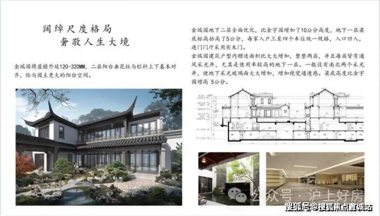 建筑设计:汲取明清建筑优点,融入宋代建筑风格,运用斗拱、镂空雕花等元素,约 2/3 宅园设置入户连廊,部分建筑由香山帮匠人打造,选用非洲黄花梨木作为古建和木构工程主要材料。