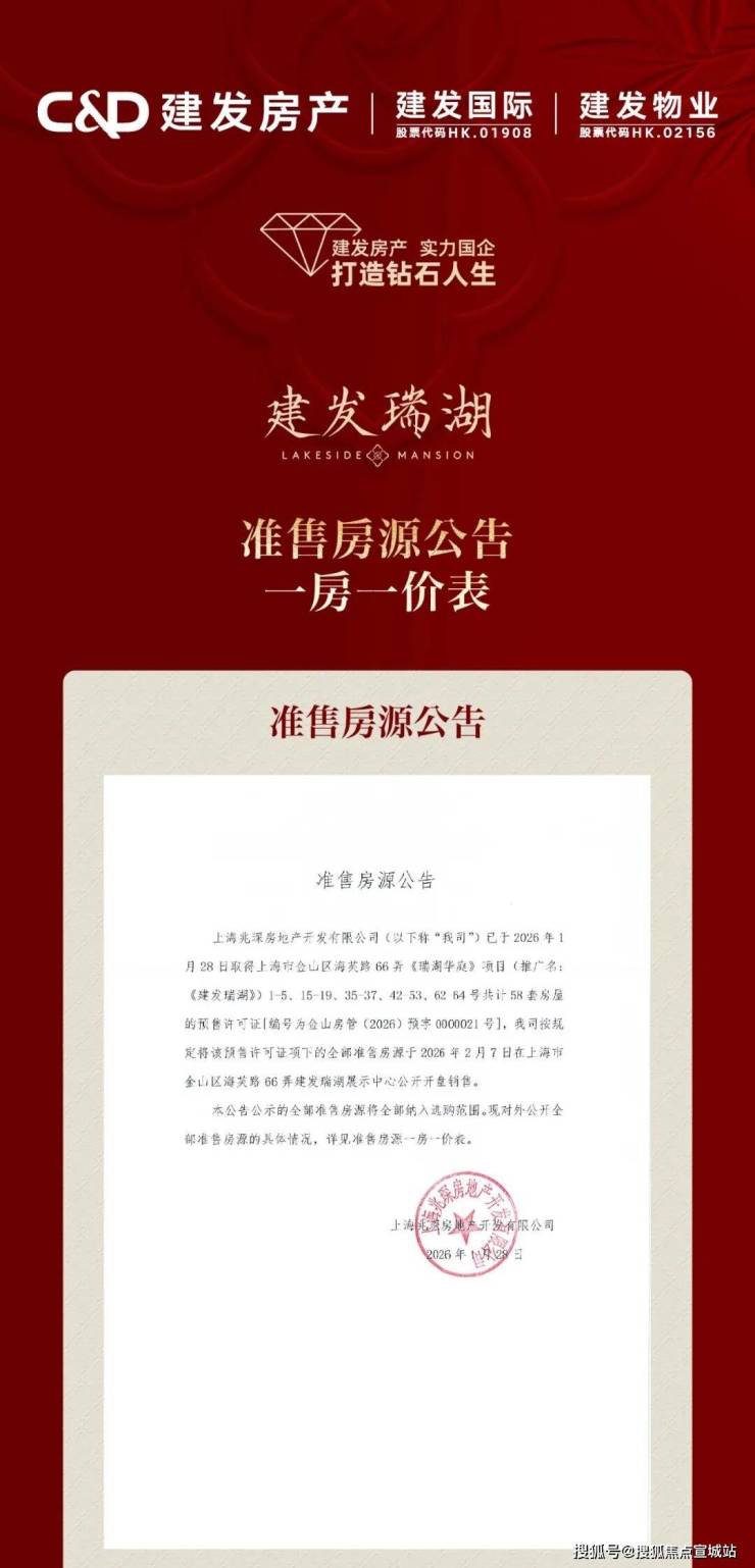 最新消息,金山新城「建发瑞湖」在售中!建面约182-310㎡叠加&联排,均价4.04万/㎡!