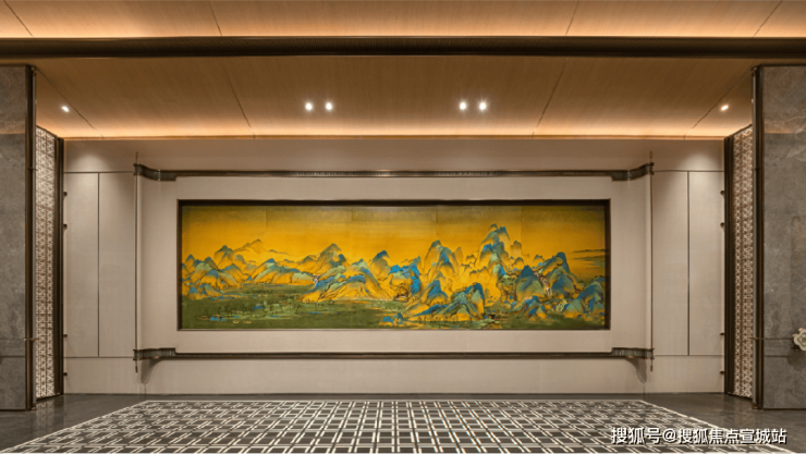 金山罕有双主门制,东门规制更显恢弘。入门,《蓬莱仙境》非遗漆画与西区山河遥相呼应,烟波浩渺间,藏风聚气,基业长青之意境悠然而生。