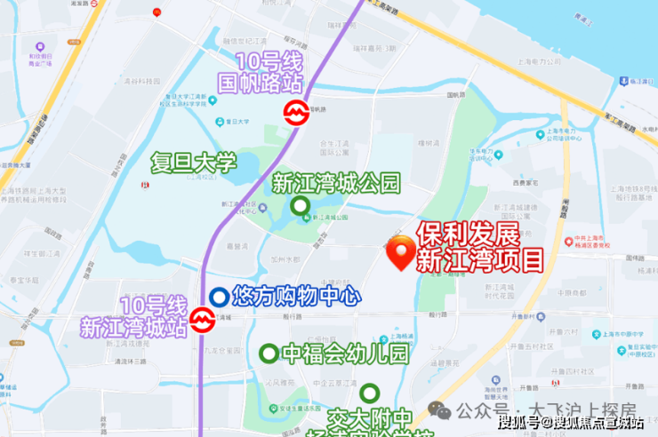 项目直线距离10号线新江湾城站约1.1公里,无需换乘可直达五角场、南京东路、豫园等各大商圈。