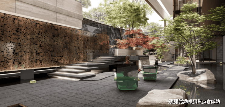 项目采用全人车分流设计,地面不见一个车位,1414个地下车位合理规划,全方位保障社区的安全与静谧。西南角下沉式庭院与公共开放空间完美结合,打造出自然与社交深度融合的活力场域,让您的生活处处充满生机与乐趣!