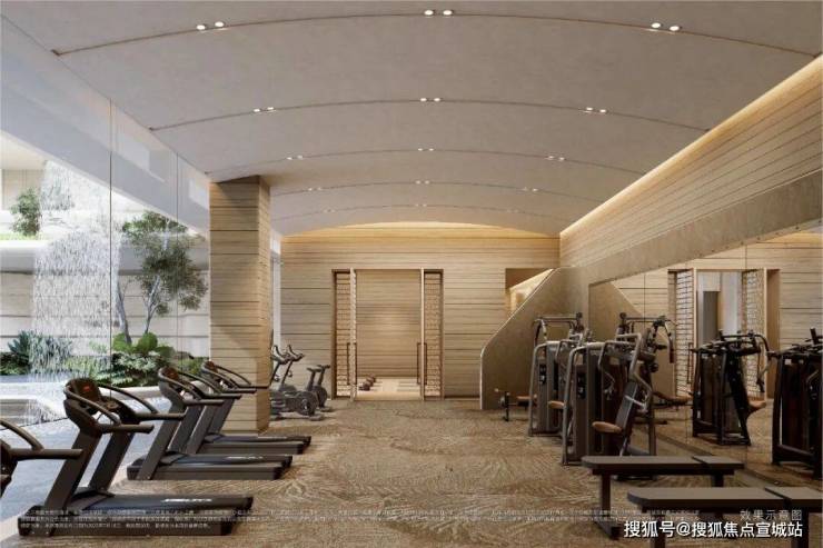 其次,整个会所对标星级酒店艺术品位,设计了私宴厅、瑜伽室、棋牌室、区域首创国标壁球馆、飞瀑园景健身房、嵌入式景观书吧等空间。