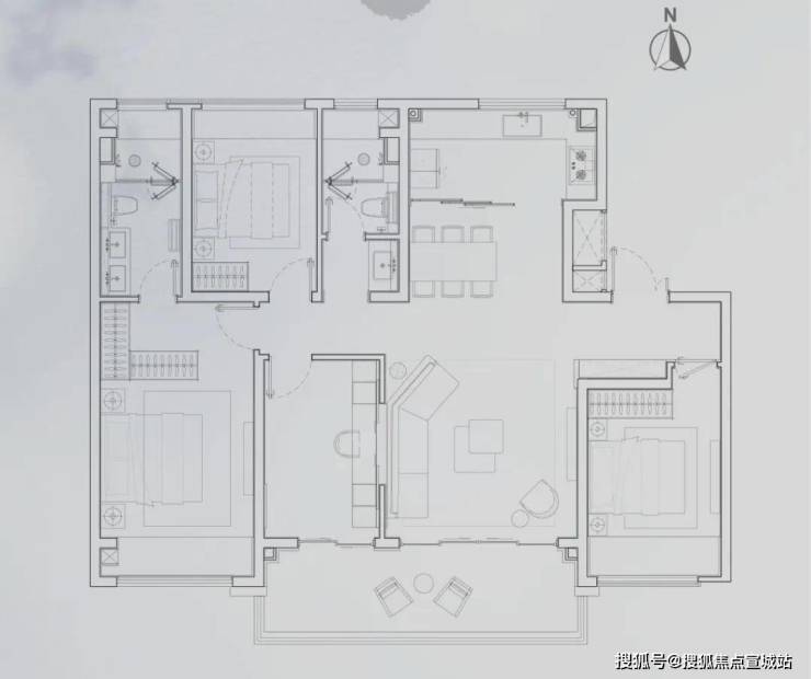三卧朝南|LDKB格局|双联阔景阳台约2M进深|3+1灵动空间|主卧套房