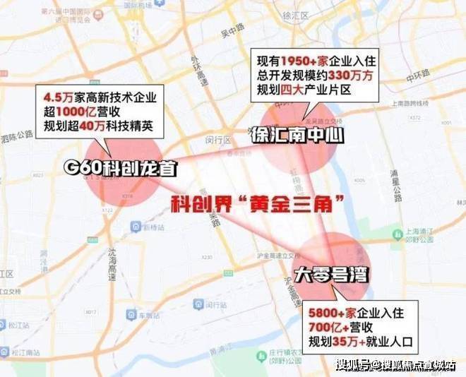G60科创龙首与徐汇南中心、大零号湾,被业界喻为科创界的”黄金三角“天花板!