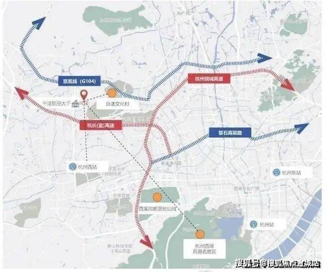 两横:104国道、杭长高速枢纽地标TOD:杭州火车西站{地铁3号线、19号线(机场快线)}