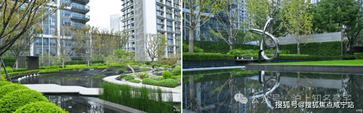 西向则近观项内部实景园林、和灵动连绵的“小黄浦江”!