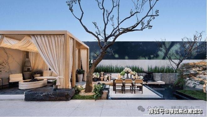 一进院:社区门口的 6米宽瀑布景墙+落石+大乔组合,构筑起一道 天然噪音屏障,进入瞬时隔离城市喧嚣!二进院:经过廊道,现代 东方照明系统与景墙的组合,在光影变幻间呈现“移步换景”的归家仪式感!三进院:来到社区中央, 18米宽的中心景观轴,搭配景观水池与疏密乔木,形成极简却又不失典雅气质的主景观花园!四进院:绿荫环绕的林下空间,为邻里交流提供惬意轻松的绿意场所!五进院:密植小乔合围的私密通道,配合定制石材院门,完成从公共到私域的过渡!1000平下沉式会所,安排了诸如健身房,私宴厅,四点半学堂,洽谈区等诸多功能,方便业主在这里安排社交活动。