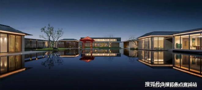 嘉兴锦玉园在东方水院里延伸出一座古雅的“映月亭”,再现“煮水红亭山惬意,悠闲自比水中珠”的诗画意境,将空间、养生、休闲、艺术及生活美学等内容包裹消化,在渐次递进的过程中,引领访者不断深入极具嘉兴人文韵味的空间场景。“映月亭”的整体色调呈低调素雅的“赤绛红”,由嘉兴古典传承的剔红漆器工艺中提取而来,似日暮时分天边的云霞,晕染了水院,映衬出穿越古今的东方美。