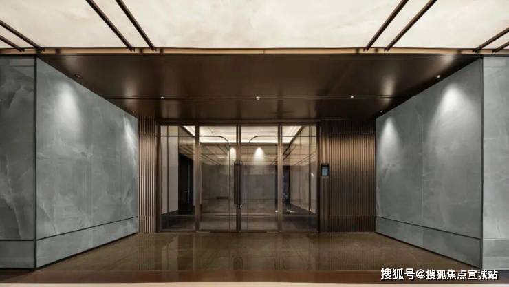 车库入户大堂,也是超乎预期,做出了苏州罕见的地库玄关,天青色岩板背景墙、无主灯吊顶工艺、智能可视对讲……满屏高级生活格调。