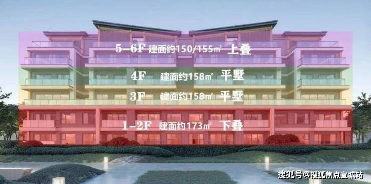6层组合墅:中轴区采用经典双叠层+平层结构,外围区创新设置三重立体单元。