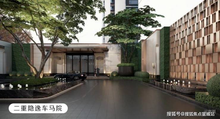 只有精品高端酒店才有的隐私性入户车马院,左边是业主及宾客入户大堂,右边是车行地下车库入口,右侧还专门设计了外卖及快递等服务人员的专门通道连接物业快递柜处,隐私性和安全性能拉满!