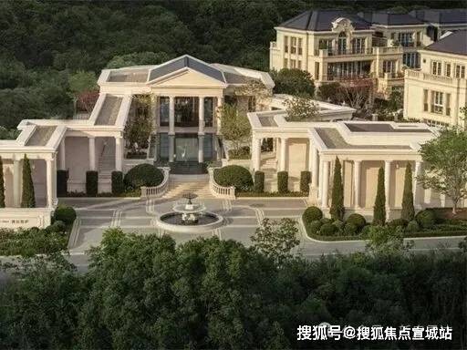 入口大门宽约 50 米、高约 8 米,采用法式宫殿设计,石柱、连廊、水系层层递进,威严大气;园区内白墙黛瓦、曲径通幽,搭配百年乌桕、香樟、紫薇等名贵古树,水景贯穿全园,一步一景,尽显法式庄园的浪漫与尊贵。