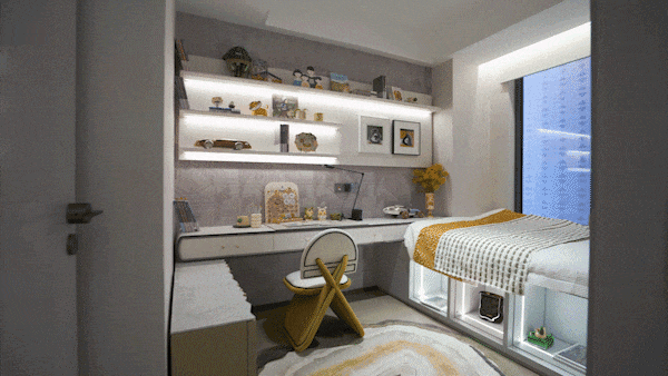 尤其是北次卧,面积约9㎡,几乎对标同类竞品的主卧大小了,结合北向景观飘窗,视觉上增加室内通透度,提升空间利用率。