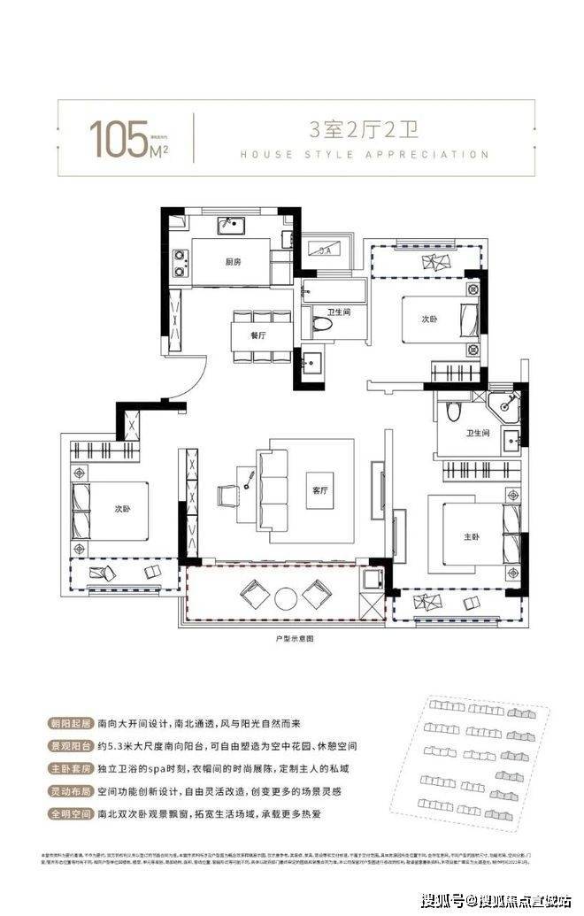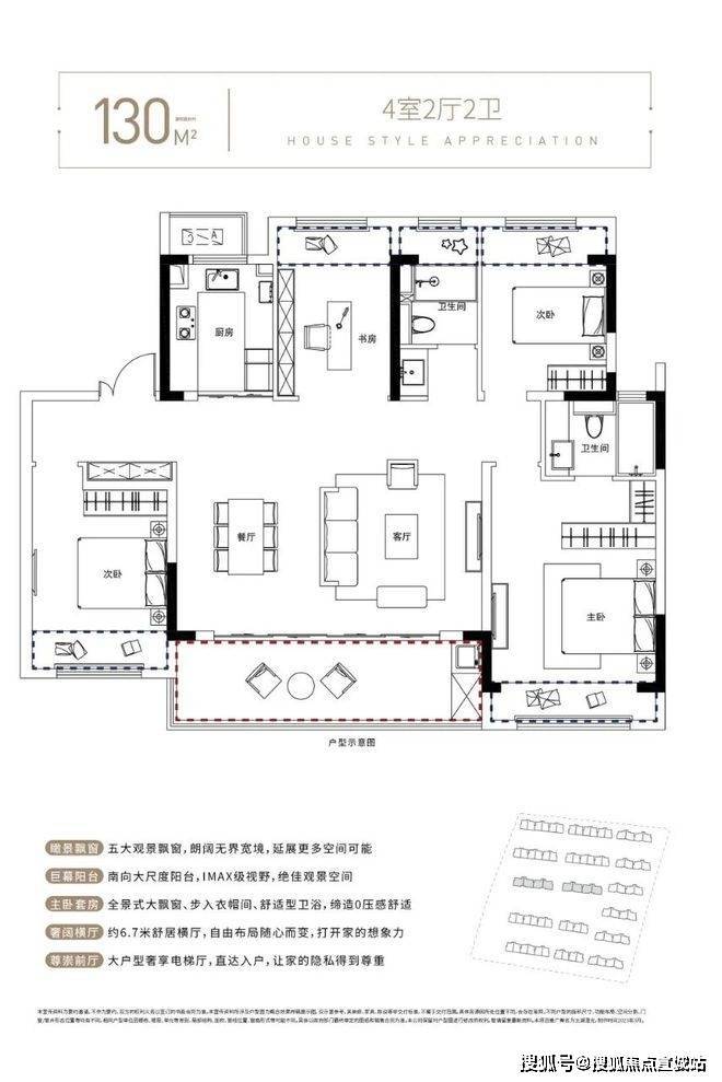 主力户型:有 95㎡三居室、105㎡三居室、130㎡四居室。