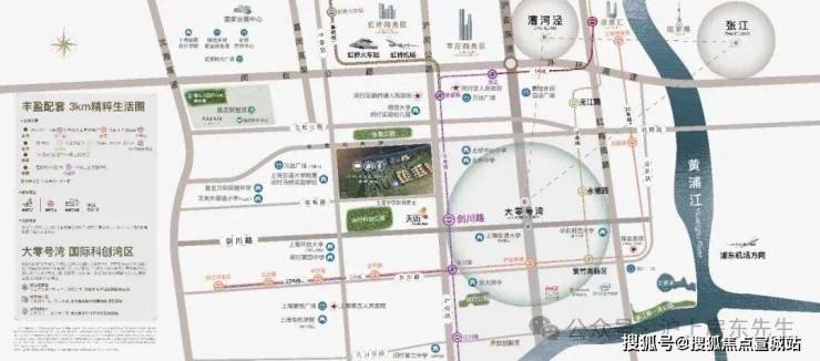 教育配套:直线 1 公里内有上海交大附属实验小学,3 公里范围内涵盖 31 所幼儿园、9 所小学和 8 所中学,包括闵行区北桥中心小学、上海交通大学附属中学闵行分校等,不过新房暂未明确学区划分,最终对口学校以交付后政策为准。