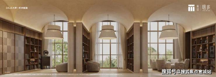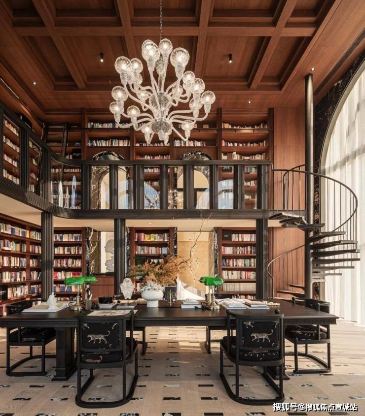 咏印明庐每幢住宅楼下都做了主题泛会所,未来仅供小区内业主使用。其中已经实景呈现的就有一个茶叙空间,还有个超级出圈的图书馆。它的灵感,源于都柏林圣三一学院图书馆,扶着旋转楼梯而上,流动的光线,超5000册书本,使人仿佛真的置身于霍格沃兹的回廊之间。
