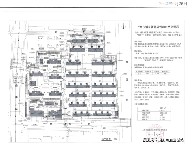 2022年9月23日,上海建工惠城置业发展有限公司以总价121040万元竞得惠南镇东城区南单元(PDS3-0206)B8-7地块(“城中村”改造项目—惠南镇红光村地块),楼板价15040元/㎡,溢价率0%,房地联动价34015元/㎡。