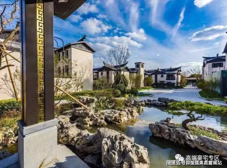建筑风格:采用新中式风格,白墙黑瓦,中轴对称,融入亭台、叠水等中式景观元素,同时辅以现代工艺与材料,如金属线条等,营造出浓厚的中式宅院氛围。