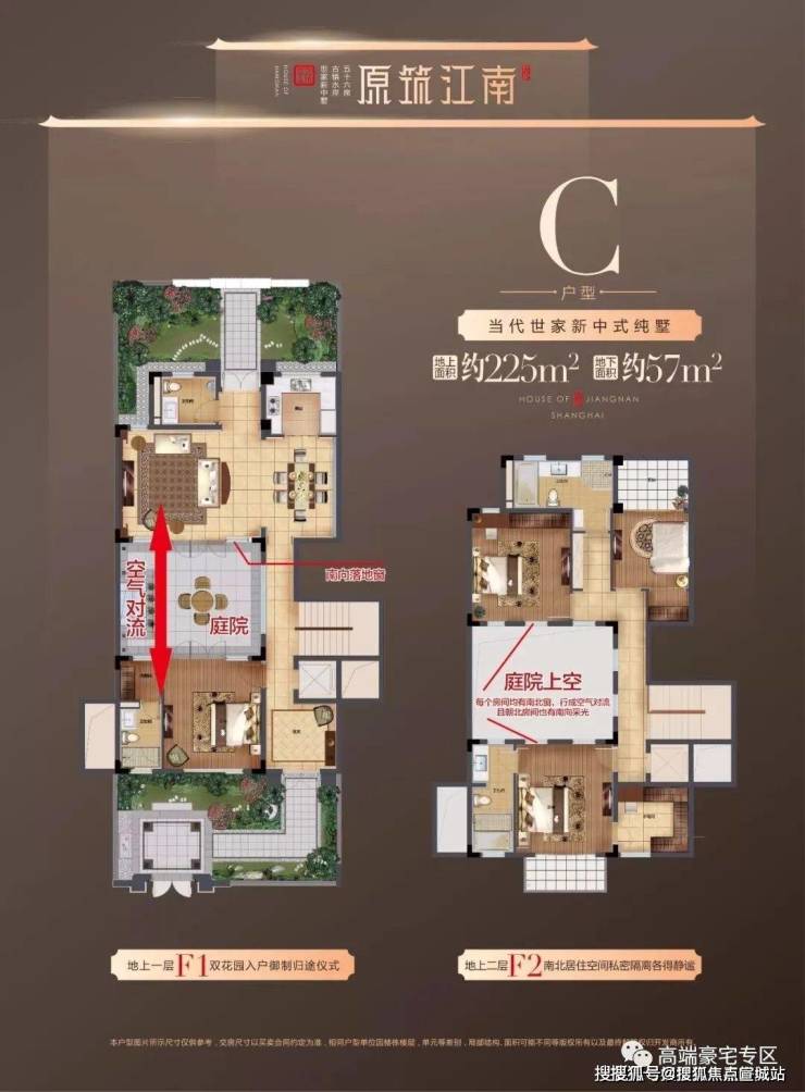 户型设计:主力户型为建面约 282-494.63㎡的 4-7 居室,均为地下 1 层,地上 2-3 层设计,且南北都有花园,花园面积在 50-100 平方米。