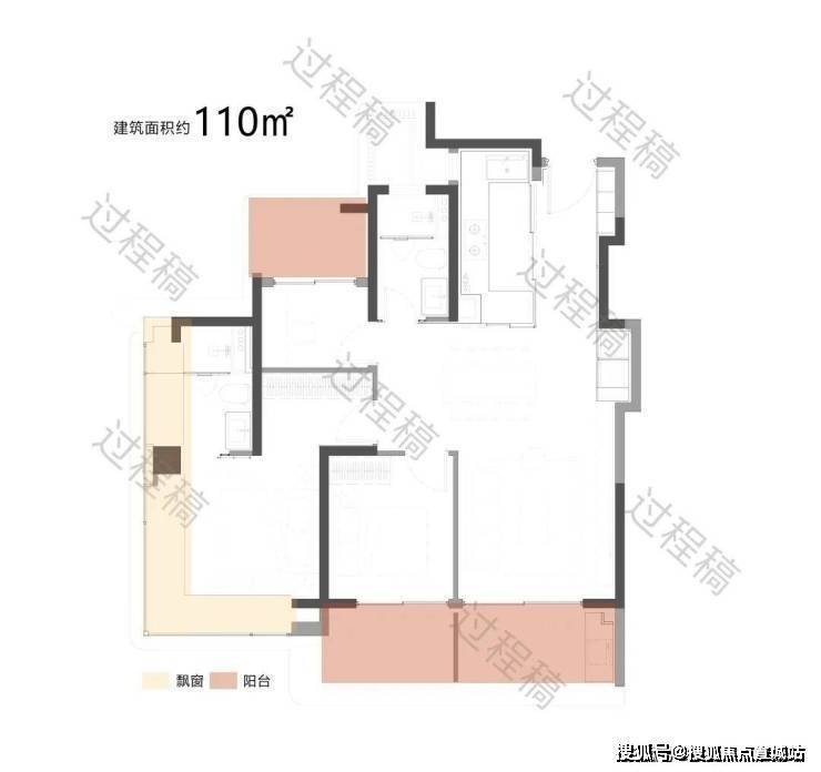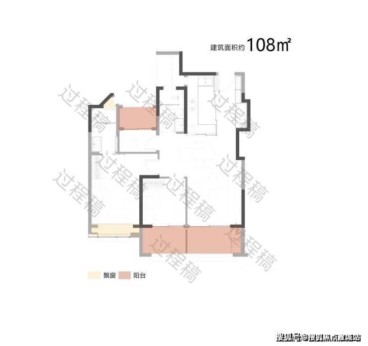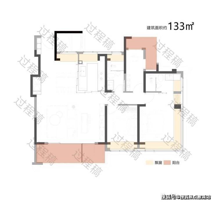 户型配备大面积飘窗(浅米色区域)和阳台(浅粉色区域),飘窗可引入柔和的自然光线,提升卧室等空间的明亮度;阳台则进一步拓展了采光面,同时有利于空气流通,保障室内通风效果,让空间更显通透舒适。