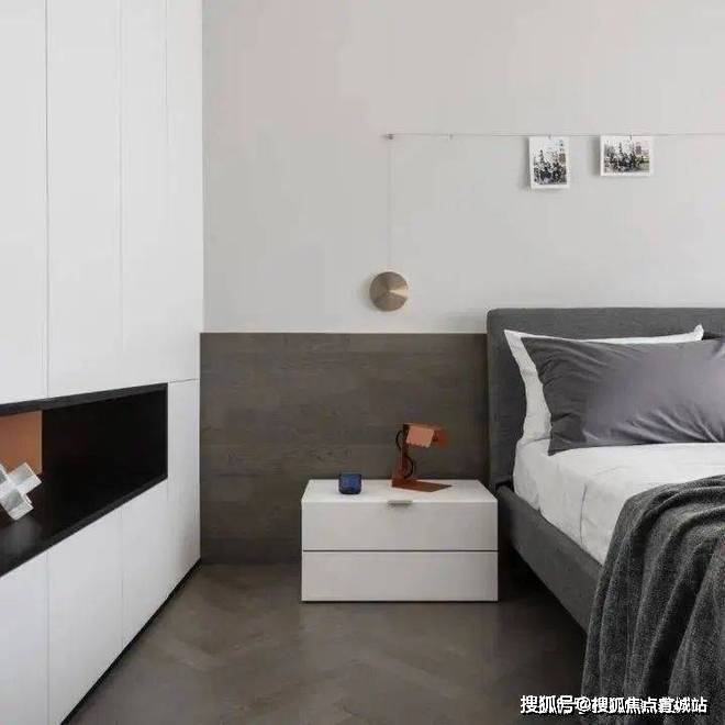除此之外,还专门用装配式墙板隔出了一个小小的工作区/化妆区,与开放式的衣帽间在一起,背面也不会被浪费,可以当成电视背景墙使用,如果不看电视,安装上电影幕布就是妥妥的家庭影院。