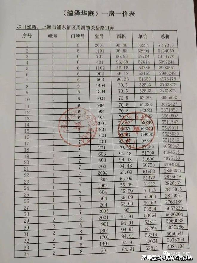 最后,附上完整一房一价表: