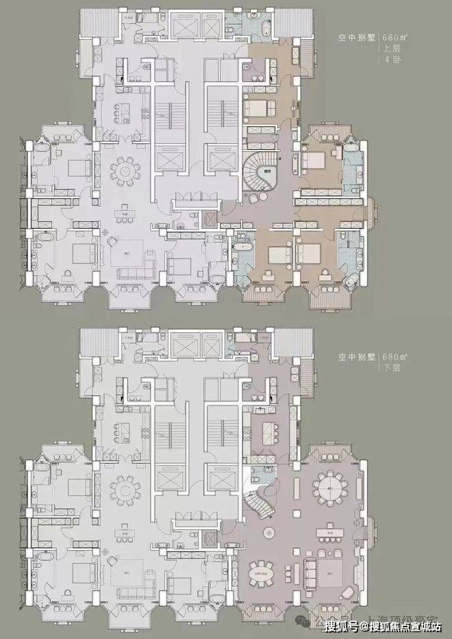 住宅部分全部大平层(复式)设计,单套面积约370-1500㎡,全部精装交付。