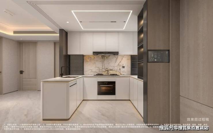 不仅在建筑主立面精雕细琢,保利更将目光投向第五立面,比如在大家都不注重的入户大堂顶部,保利也进行了美化。
