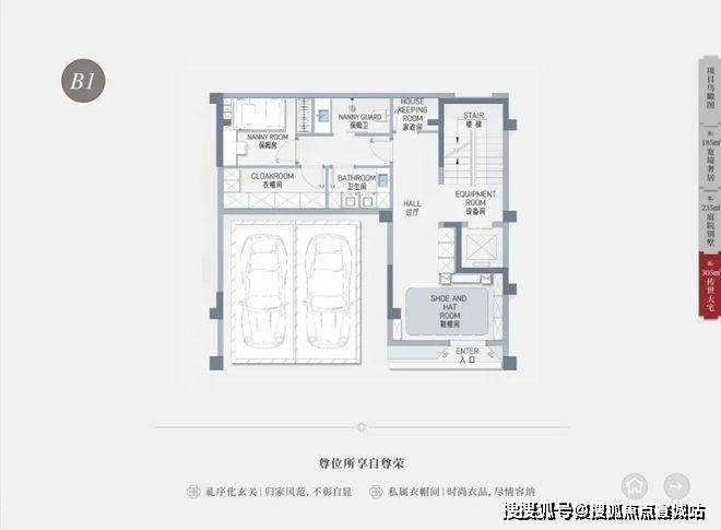 户型面积:有 185㎡、220㎡、260㎡、305㎡等多种户型。其中,185㎡户型一层有 30㎡南向花园,客厅面宽 5 米、挑高 3.5 米;220㎡户型一层有 40㎡花园,还专门设计了一间老人房。