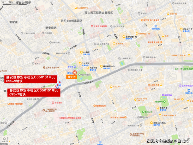 另一块地,静安区静安寺社区C050101单元095-9地块,为商业用地,该地块用地面积为0.1万平方米,容积率为1.91,总建面0.19万平方米,成交价7454万元,楼面价39026元/㎡。
