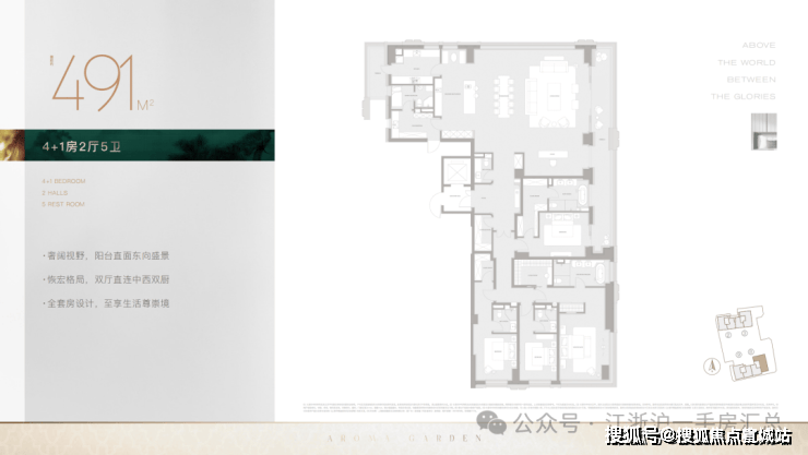 在售户型面积:主力户型为 4/5 居室,面积在 262-491㎡之间,还有仅两套的约 901㎡稀缺顶复。