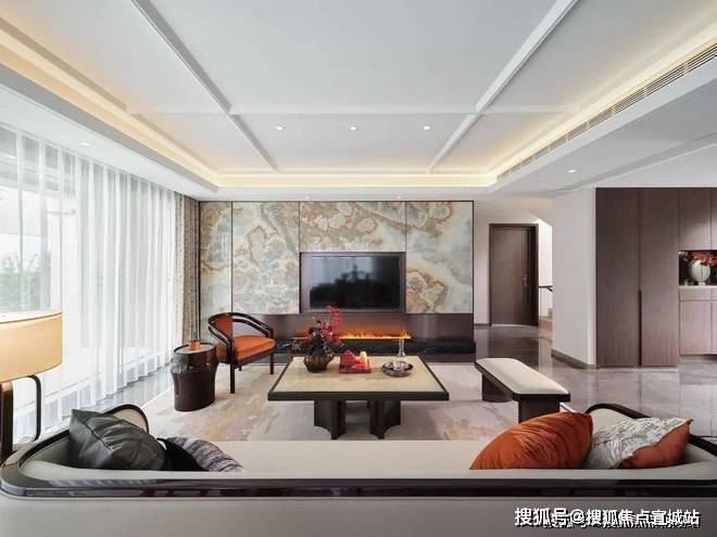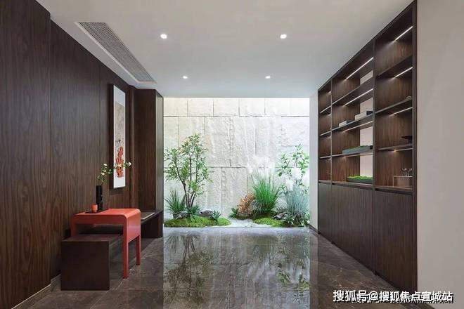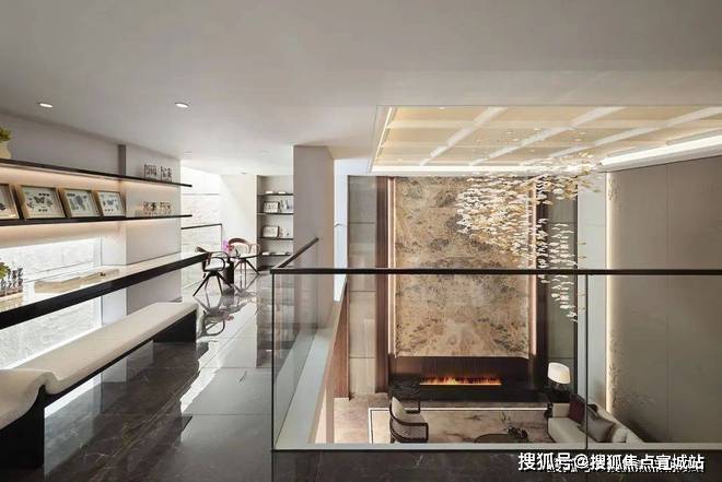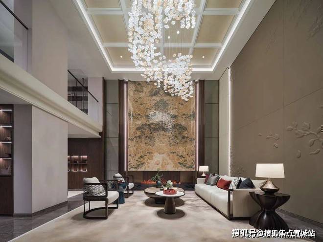 售楼处电话:400/8862/334【热线】地下空间,以古时的「雅集」为灵感,打造了一个氛围柔和舒适的休闲娱乐空间,挑空的设计,让空间显得大气非凡,顶面延续了之前紫禁明月中的方格金箔顶,墙面的大块水墨玉石,宛若矗立山林间。