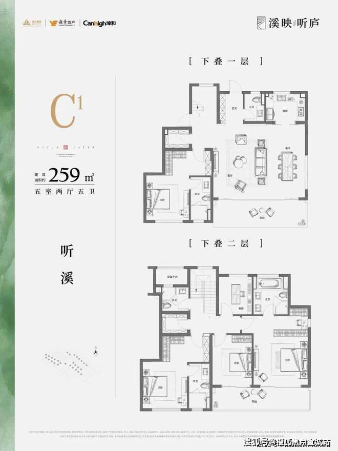 售楼处电话:400/8862/334【热线】建面约259㎡边套下叠的客餐厅面积占了单层近一半,L型采光大客厅,连北向的楼梯井都做到了全明,阳台外的屋檐之下自然地形成了一个灰空间,通过与落地窗、绿篱的围合,形成私享的院落。