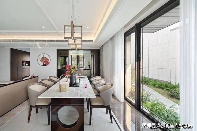售楼处电话:400/8862/334【热线】客厅和餐厅,以古时「观灯」为主题,餐客一体的设计,空间上宽阔敞亮,视觉上规划有序,总体以米灰色为主基调,配以深色框线。室外的美景作为背景墙,自然与居所协调融合,使家中富有自然气息,有一种树林诗会的意境。水墨玉大理石的天然纹理犹如山水画卷,体现了文人墨客诗意生活不可或缺的部分,即作画赏析的情境,生活也可以充满诗意。