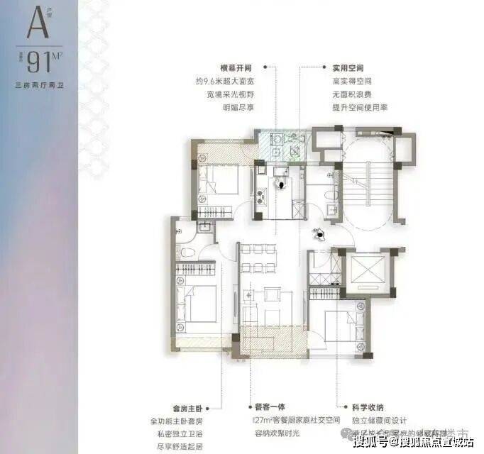 空间魔法:92%-95%超高得房率冠绝市场,封闭阳台拓展实用面积,91㎡真三房做到三开间朝南,165㎡户型以约16.85米南向面宽、60㎡餐客厅媲美200㎡大平层体验;