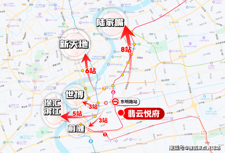 3站前滩/世博、5站徐汇滨江、6站新天地/世纪大道、8站南京西路/陆家嘴。
