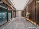 门廊以虚实相间的形体划分入口空间,山水画卷屏风营造入口仪式感,玻璃景墙与内庭的自然景观光影交织,隐约可窥内庭,半遮半掩却又不失端庄。