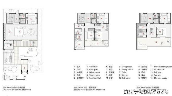 住宅产品由合院、排屋和叠墅组合而成,户型充分发挥项目的景观优势大量设置阳台、退台、屋顶露台,客厅、主卧等主要空间转角两面设置大面积玻璃窗把湖景最大化纳入室内。