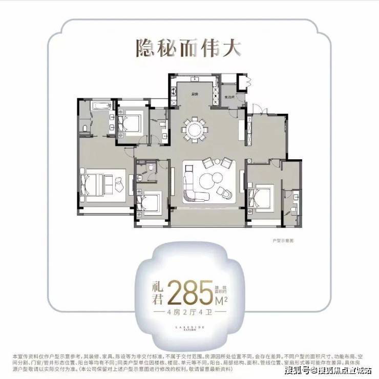主力户型:建面285-340㎡大平层,6开间朝南,得房率83%-85%