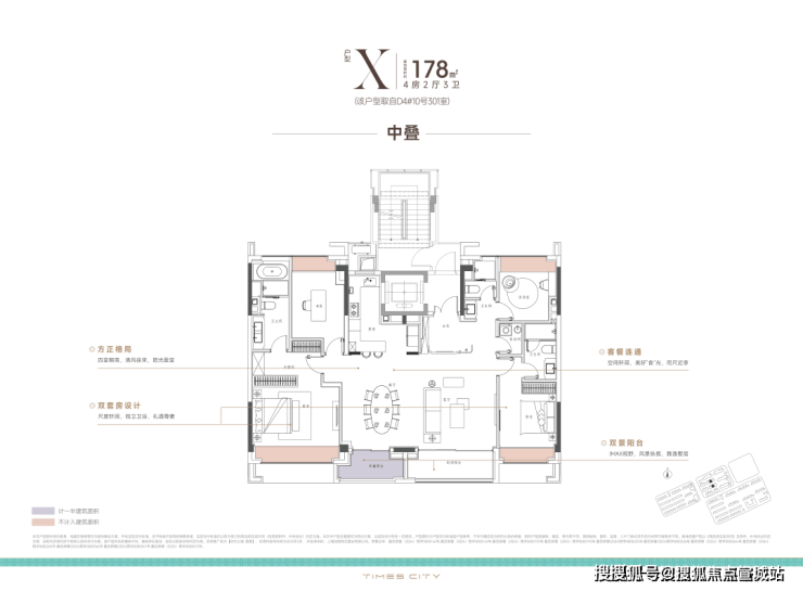 项目的中叠四开间朝南,超大IMAX的采光面,妥妥市区豪宅大平层的尺度感。