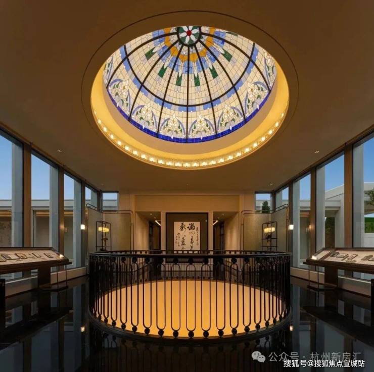 园区里,70年树龄老桩紫薇、桂博园同款椭圆丹桂、水珐景墙旁的乔木红枫,搭配景泰蓝、蓝翡翠等全球进口奢石,把世界珍藏化作私家庭景。大堂室内璀璨的穹顶花窗,是从西湖历史建筑中复刻而来的。
