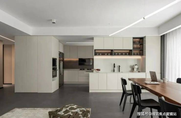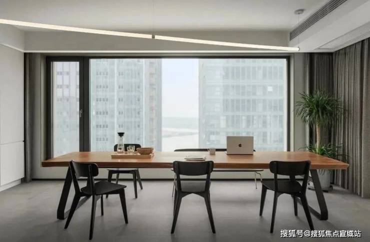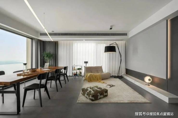 客餐厅采用一体化的设计,空间更加区域敞亮,恰到好处的留白带来了更多的高级感,用懒人沙发和长桌来划分空间,这种划分空间的方法不隔断空间,更加有层次,点线面结合更富东方的美学意境,让人与空间之间相互深度交流.
