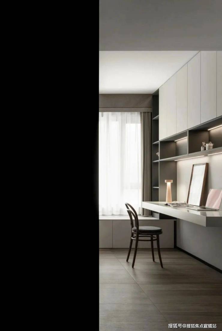 阅读区设计的比较休闲,目的是想让屋主人悠闲的品味阅读,去感受生活的闲适和幸福,悬浮的书桌体现着屋主人的高品位,或是打开电脑办公,或是闲逸读书,都是简单生活的美好.