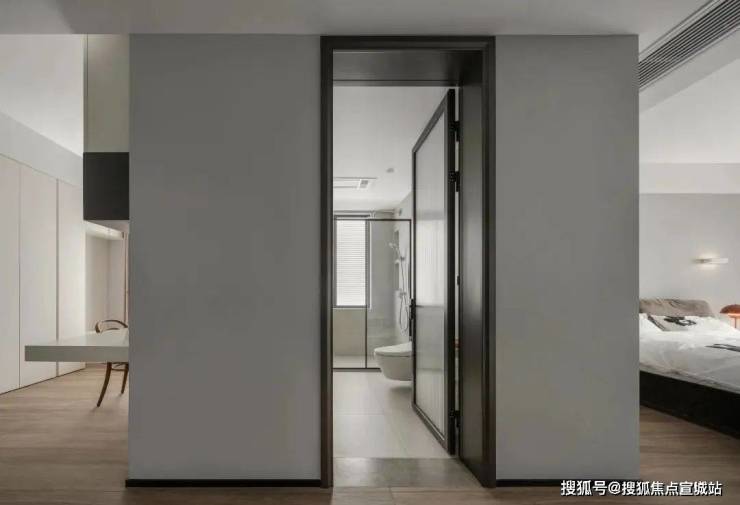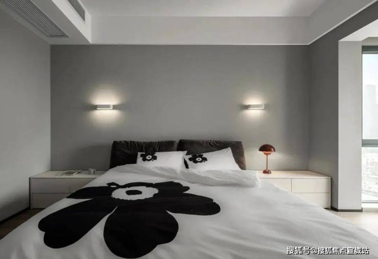 主卧和主卫采用米灰色作为主色调,向外延伸的观景落地窗能方便一览城市的繁华,在灯光的点缀下,美好与幸福的感觉油然而生,加上慵懒风的加入,使得这个休憩空间更加微妙,进入到这里便感觉到舒适与安心.