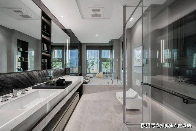 独立卫浴空间及步入式衣帽间,引入国际一线奢装品牌,以品质、定制、美学理念提炼少数派的居住享受。独处时的安谧天地,可承载读书、观景、电影等私人志趣,从世界审美到精神高地,风雅的生活方式在此完成闭环。