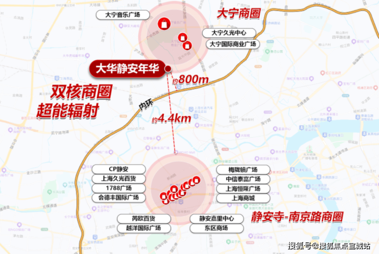 而大华静安年华,正落子大宁板块更靠近内环的黄金C位,以约800米直抵内环的稀缺站位,独享双核商圈超能辐射。(距离来源百度地图)