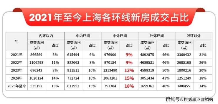 据网上房地产成交数据显示,中外环间成交占比从2021年的9%提升至2025年的19%,增幅高达10个百分点,位居各环线之首!
