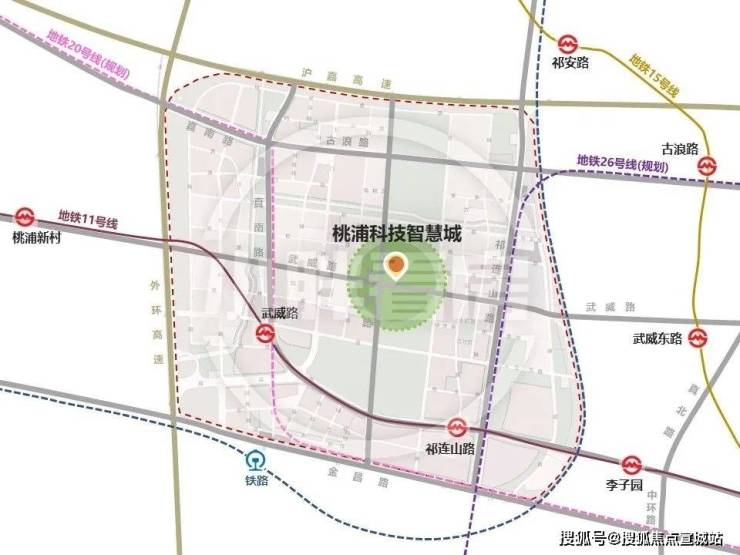 地铁方面,区域内已经有了 11号线和15号线。规划的 26号线地铁线在桃浦智创城范围内沿祁连山路也将设立站点。